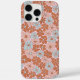Revêtu d'un motif floral rétro et transparent, avec des fleurs audacieuses dans les tons orange, pêche et bleu sur un arrière - plan rose clair, parfait pour des motifs d'inspiration vintage.
