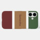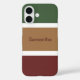 Boîtier de téléphone portable moderne, simple et élégant, avec un motif à schéma de couleur de chute. Grandes bandes vertes, bronzées et marrons avec petites bandes blanches. Votre nom est imprimé dans un texte marron.