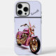 Une moto rose et or avec un travail de peinture sur mesure et des accents chromés est exposée contre un arrière - plan blanc. La moto a un moteur puissant et un design élégant.