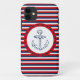 Design nautique avec ancrage dessiné à la main décoration arrière - plan rayé bleu, rouge et blanc