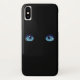 Oeil bleu, yeux de chat ninja, couleur arrière - plan personnalisée.