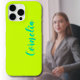 Moderne Neon Lime Jaune iPhone 16 Coque (Spring Green et Azure Shadow 3D Text Name) Ajoutez votre prénom, votre nom de famille, vos lettres initiales. Personnalisez pour votre usage personnalisé. Cliquez sur le bouton "Customiser" pour modifier la couleur de l'arrière - plan, les styles de police et la couleur de police.