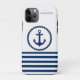 Coques Case-Mate iPhone Nom du bateau nautique, Ancre Marine Bleu rayé