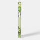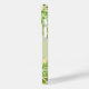 Boîtier de téléphone cellulaire Monogrammed vert et rose floral tendance. Un coque iphone mignon et féminin avec un monogramme et un modèle de nom. Les modèles personnalisés sont bordés de fleurs d'aquarelle rose, jaune et blanche aux feuilles et verdure, sur un arrière - plan vert.
