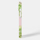 Boîtier de téléphone portable Monogrammed rose floral tendance. Un coque iphone mignon et féminin avec un monogramme et un modèle de nom. Les modèles personnalisés sont bordés de fleurs d'aquarelle rose, jaune et blanche aux feuilles et verdure, sur un arrière - plan rose.