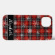 Personnalisez votre téléphone portable avec ce coque avec un design plaid rouge et noir hivernal avec des flocons de neige et de neige et un nom ou monogramme dans un style de police manuscrit chic et modifiable. ASSISTANCE : Pour obtenir de l'aide sur la modification ou la personnalisation de la conception, le changement de couleur, le redimensionnement, le transfert de la conception vers un autre produit ou si vous souhaitez coordonner des éléments, contactez le concepteur AVANT LA COMMANDE via l'onglet MESSAGE Conversation Zazzle ci-dessous ou envoyez un courriel à makeitaboutyoustore@gmail.com.