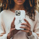 Élégant et magnifique, ce design coque iphone monogramme unique affiche l'initiale de votre prénom dans une police serif simple et une police calligraphie élégante dans l'arrière - plan. Votre nom est affiché sous votre monogramme initial dans cette conception personnalisée de typographie unique. Les trois éléments se fondent dans une harmonie sophistiquée et créent votre propre logo de marque personnelle. Montré ici avec un arrière - plan blanc propre avec des éléments monogrammes dans beige neutre et gris fusain foncé.