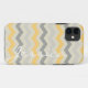 Personnalisé ajoutez votre propre monogramme, initial, nom, anniversaire ou date spéciale personnalisable jaune et gris chevron zigzag rayures zig zag moderne géométrique imprimé tribal rayé rétro, mais moderne hipster design motif iPhone 5 5S Case Mate À peine Il couverture coque.