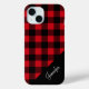 Motif moderne Red Plaid Check Nom iPhone 15 Coque.