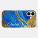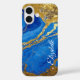 Coques Case-Mate iPhone Nom personnalisé Marbre bleu et feuille d'or