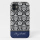Coques Case-Mate iPhone Nom personnalisé Marine noir blanc Damas