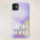 Coques Case-Mate iPhone Nom personnalisé Monogram Purple Aquarelle Luxe