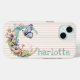 Coques Case-Mate iPhone Nom personnalisé | Pastel initial du papillon flor