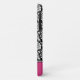 Elégant, féminin, classique noir et blanc motif damassé floral avec une bordure rose chaud avec nom personnalisé personnalisé.