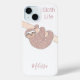Ce mignon étui téléphonique comporte une parties scintillant en or rose, un paresseux souriant accroché à une branche. Les mots Sloth Life et le nom peuvent être changés pour personnaliser cette étui téléphonique. Aquarelle originale © Michele Davies