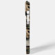 Customize this oak tree camouflage iPhone 15 pro max case with your name in a trendy modern CAP font in gray on opaque cream. It's masculine and perfect for your favorite military, hunting, country or outdoorsman!