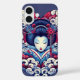 Oriental vectoriel bleu violet abstrait ondes de Geisha - japonais art thème iPhone 16 coque
