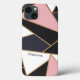 Cette conception géométrique abstraite comporte des lignes diagonales dorées séparant des blocs triangulaires en noir, blanc et rose. Pour iPhone 13, Samsung Galaxy S6 à S10, et Google Pixel - svp choisissez votre appareil. Pour modifier le nom, la couleur ou la taille du texte, appuyez sur "Modifier la conception" puis sur "Modifier le texte".