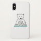 Polaires tristes concernent des caractéristiques de glace un ours blanc accrochant sur un morceau de glace de fissuration flottant en mer bleue froide. Un message au sujet de l'environnement fragile de l'ours blanc et d'un dessin attrayant de ce prédateur magnifique.