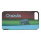 Un ours polaire arpente la glace pendant la longue nuit polaire; les aurores boréales en rouge et vert au loin. La lecture de texte " ; Canada" ; apparaît également en bleu et blanc brillant.