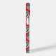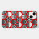 Ce boîtier téléphonique a un design géométrique des ovales avec différents motifs en gris dans chaque moitié sur un champ de rouge.