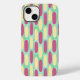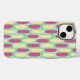 Ce boîtier téléphonique a une conception géométrique de fait d'un arrière - plan de rectangles vert mer et bleu clair avec des ovales jaunes et roses sur le dessus.