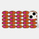 Ce boîtier téléphonique a un design moderne du milieu du siècle de répétition ovales orange avec ovales roses à l'intérieur.
