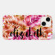 Un élégant boîtier de téléphone portable est doté d'un motif de frondes de palmiers tropicales en rose et orange et de votre nom en lettres chic. Créez-vous pour vous-même ou offrez-en un cadeau. Choisissez votre MODÈLE DE TÉLÉPHONE et votre COQUE STYLE lors de la commande. CORRESPONDRE des articles dans notre collection de voyages.