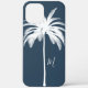 Coques Case-Mate iPhone Palmier Bleu Blanc Tropical Élégant Monogramme