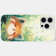 Un adorable panda rouge jette un coup d'œil à travers un feuillage vert luxuriant, créant une atmosphère sereine et fantaisiste. Des teintes douces et des détails délicats renforcent le charme général de la scène.