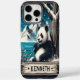 Un panda savoure un délice de bambou dans son endroit calme et isolé. L'arrière - plan en bois foncé rustique et patiné crée une ambiance naturelle. Une montagne recouverte de neige offre un cadre pittoresque, tandis que l'océan bleu apporte une touche de tranquillité. Personnalisez la scène avec un nom personnalisé.