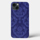 Coques Case-Mate iPhone Papier peint bleu fleuri damassé de luxe