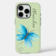Coques Case-Mate iPhone Papillon bleu aquarelle sur vert Personnalisé