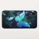 Fabuleux, brillant, bleu et jaune, papillon de nuit sur arrière - plan foncé.