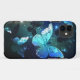 Fabuleux, brillant, bleu et jaune, papillon de nuit sur arrière - plan foncé.