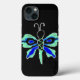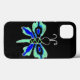 Un papillon dessiné et coloré avec des couleurs néons contre un arrière - plan noir fait un intéressant et attention obtenir iPhone 13 coque