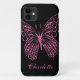 Un papillon rose vif en fécule fantaisie habille votre nom sur ce coque iphone.
