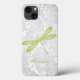 Protégez votre iPhone X avec un Coque iPhone X personnalisé Dragonfly vert. Le design coque comprend une libellule colorée, une vigne florale blanche douce contre un arrière - plan damassé gris clair avec une zone à personnaliser avec votre nom. Autres cadeaux disponibles avec ce design ainsi qu'une variété de couleurs. Personnalisez-vous ou faites un grand cadeau.