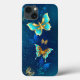 Coques Case-Mate iPhone Papillons d'or sur un Arrière - plan bleu