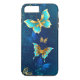 Coques Case-Mate iPhone Papillons d'or sur un Arrière - plan bleu