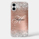 Créez votre propre appareil téléphonique monogrammé. Fille faux argent brillant parties scintillant sur rose or métallique style métallique sombre art numérique. Customisez les styles de police pour créer votre propre cadeau d'anniversaire pour elle.