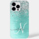 Personnalisez facilement ce design branché de boîtier de téléphone chic avec une jolie parties scintillant brillante en argent sur un arrière - plan métallique brossé turquoise.