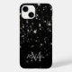 Personnalisez le boîtier brillant avec votre nom et votre initiale. De belles parties scintillant brillantes en noir et blanc brillent. Photo de parties scintillant pétillante !