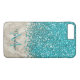 Parties scintillant bleue turquoise, étui de téléphone portable en marbre gris. Personnalisé avec votre nom et monogramme.