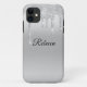 Coque iphone personnalisé Parties scintillant en argent déversé. Ajoutez votre propre nom pour en faire le vôtre ! Vous pouvez modifier la police et la couleur du texte.