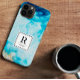 Aquarelle bleue Abstraite moderne avec Parties scintillant or, arrière - plan en marbre, Nom personnalisé Monogrammé. Personnalisez ce beau coque iphone avec votre initiale et votre nom.
