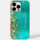 Coques Case-Mate iPhone Parties scintillant d'or Glam Turquoise Signature