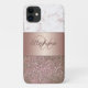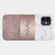 Ce boîtier de téléphone en faux parties scintillant girly aura votre téléphone protégé dans le style. Ce design branché présente des textures d'or rose et de marbre blanc, une texture rose d'or faux métallique et une parties scintillant d'or faux rose. Au-dessus du centre métallique or rose est une initiale monogrammée en typographie de script avec un nom en or rose foncé à personnaliser. Fait un cadeau unique pour les filles pour toute occasion spéciale. Conçu par l'artiste ©Susan Coffey.