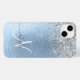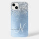 Personnalisez facilement ce design branché de boîtier de téléphone chic avec une jolie parties scintillant brillante en argent sur un arrière - plan métallique brossé bleu.