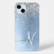 Personnalisez facilement ce design branché de boîtier de téléphone chic avec une jolie parties scintillant brillante en argent sur un arrière - plan métallique brossé bleu.